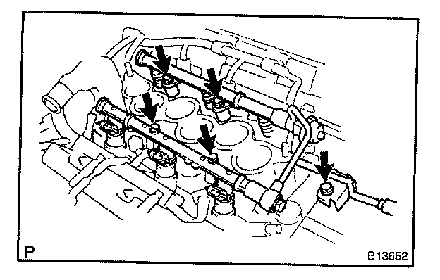 - Be careful not to drop the injectors when removing the delivery pipes.