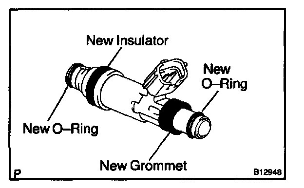 a. Install new insulator and grommet to each injector.