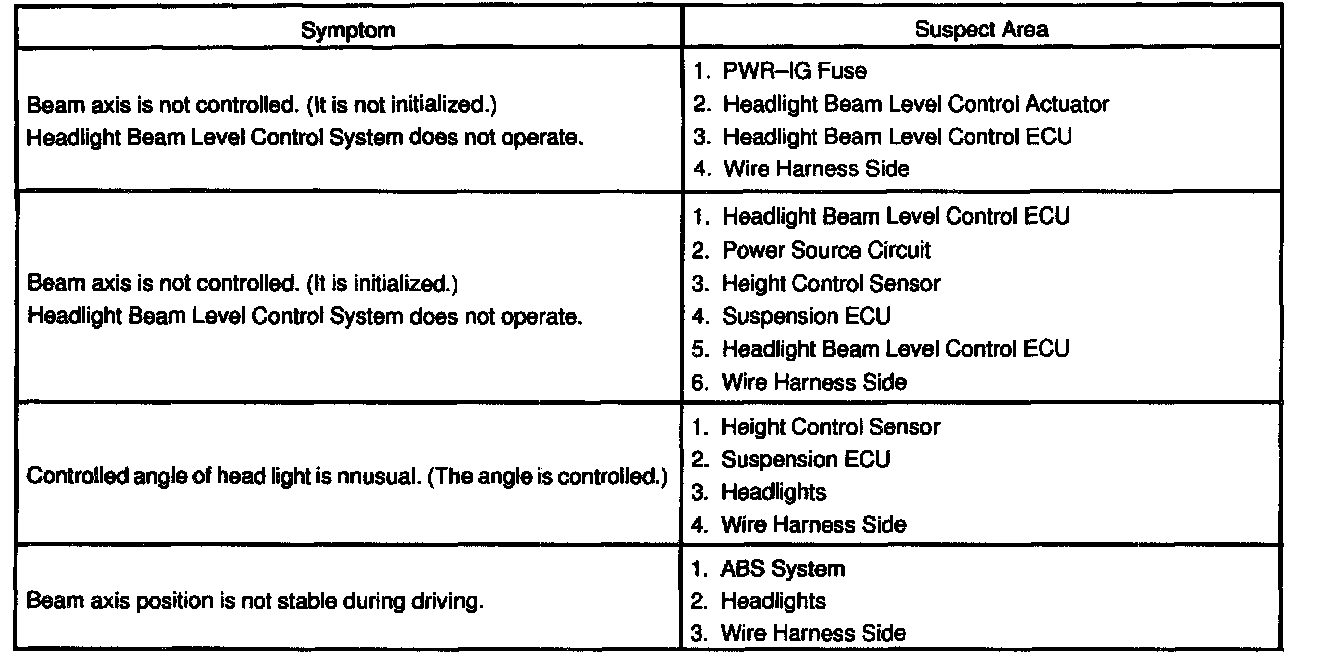 Problem Symptoms Table - Headlight Beam Level Control System: