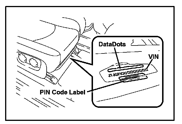A. Stick a PIN code label near the frame number (VIN) on the floor under the passenger seat.
