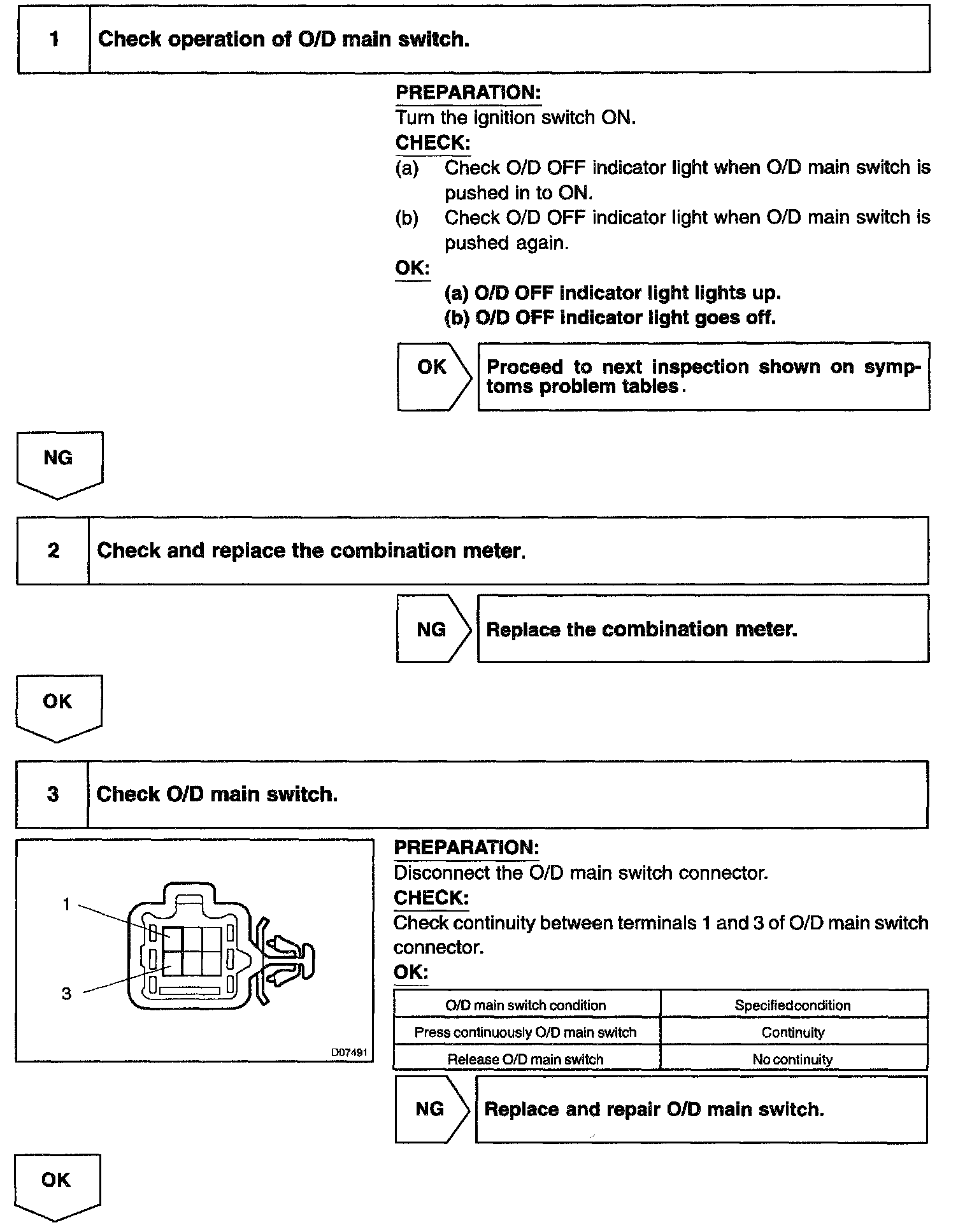 O/D Main Switch & O/D OFF Indicator Light Circuit