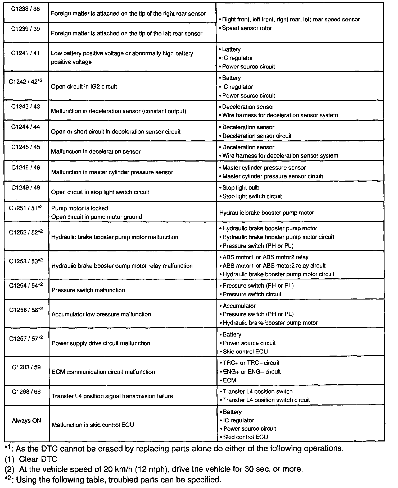 DTC chart of ABS: