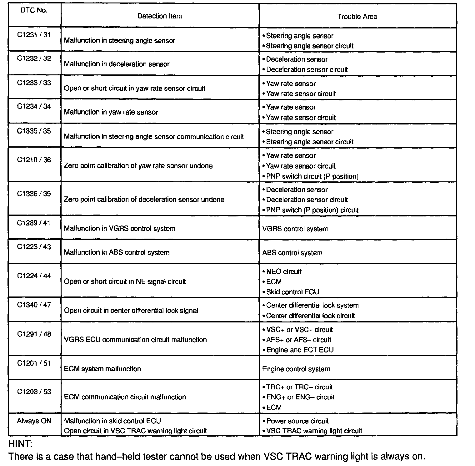 DTC chart of VSC: