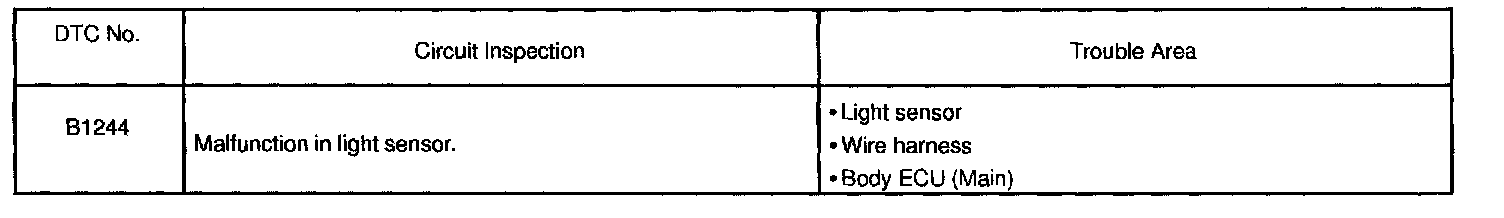 If a malfunction code is displayed during DTC check, find the circuit corresponding to the code in the table given and proceed to the appropriate troubleshooting.