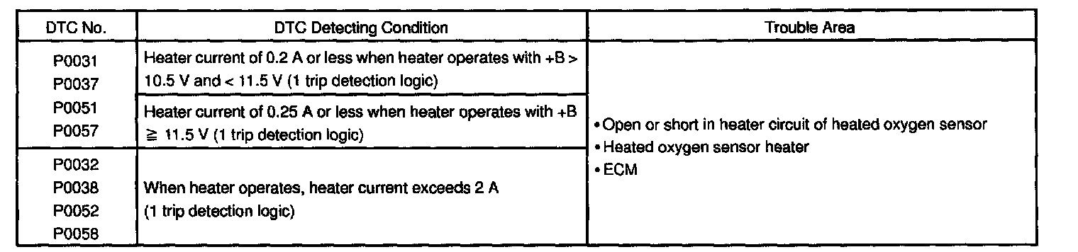 DTC P0032 Oxygen Sensor Heater Control Circuit High (Bank 1 Sensor 1)CIRCUIT DESCRIPTION