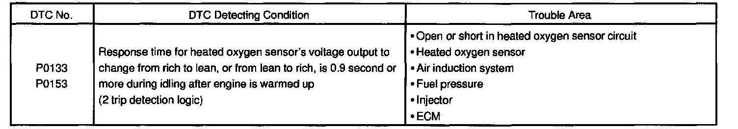 DTC P0133 Oxygen Sensor Circuit Slow Response (Bank 1 Sensor 1)CIRCUIT DESCRIPTION