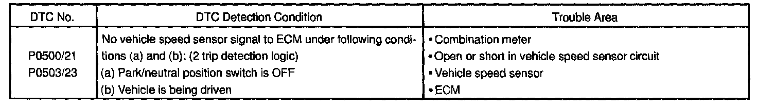 DTC P0500 Vehicle Speed Sensor "A"CIRCUIT DESCRIPTION
