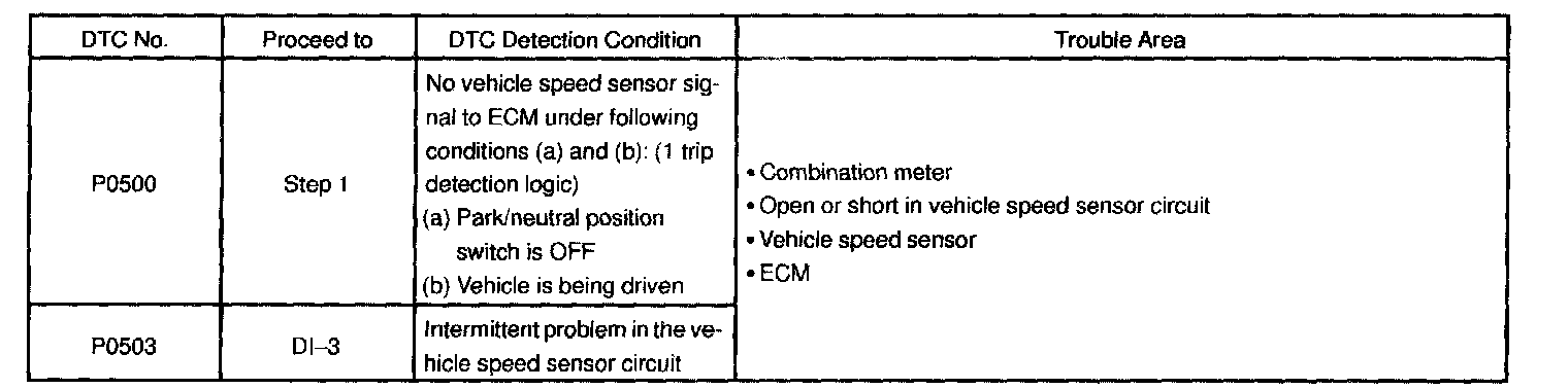 DTC P0503 Vehicle Speed Sensor "A" Intermittent Erratic/HighCIRCUIT DESCRIPTION