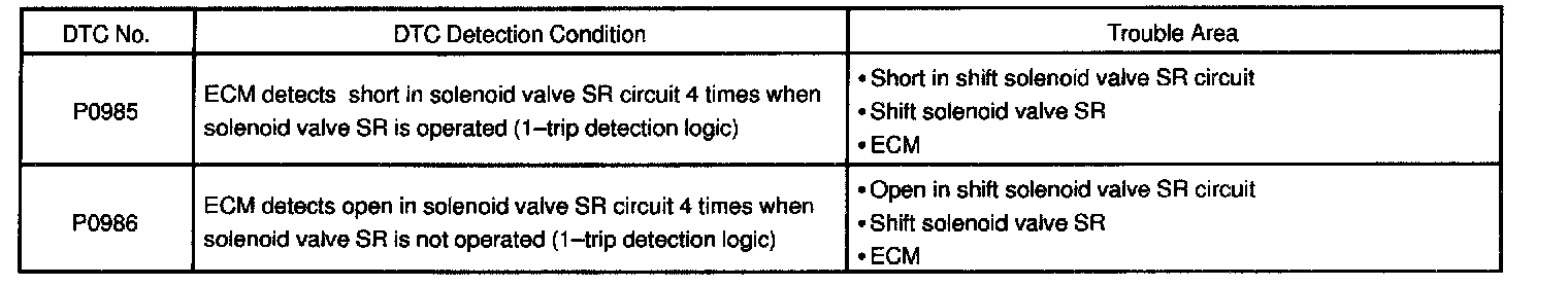 DTC P0986 Shift Solenoid "E" Control Circuit High (Shift Solenoid Valve SR)CIRCUIT DESCRIPTION