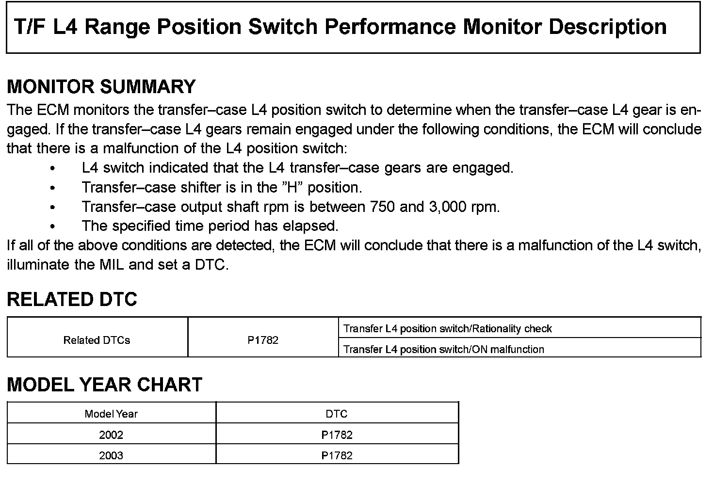 T/F L4 Range Position Switch Performance Monitor Description