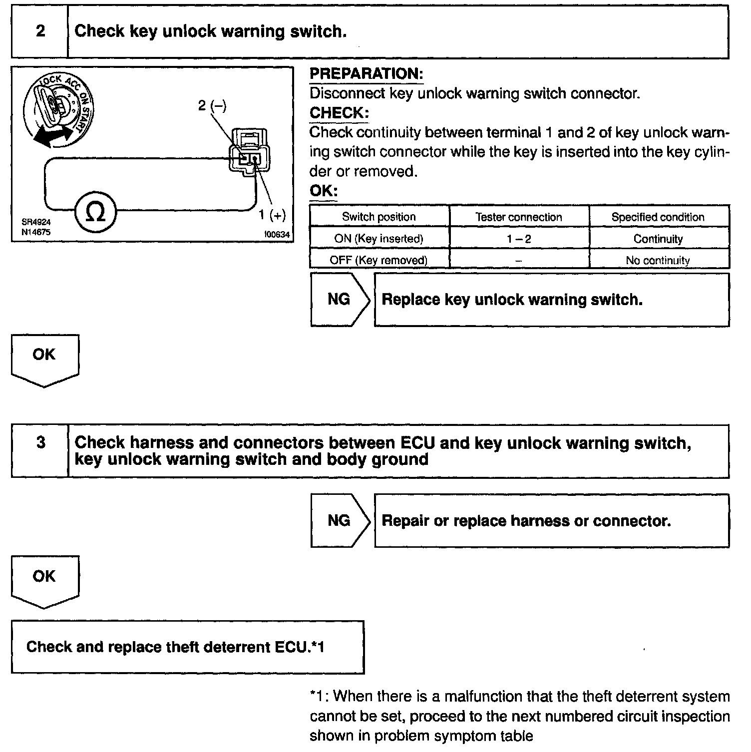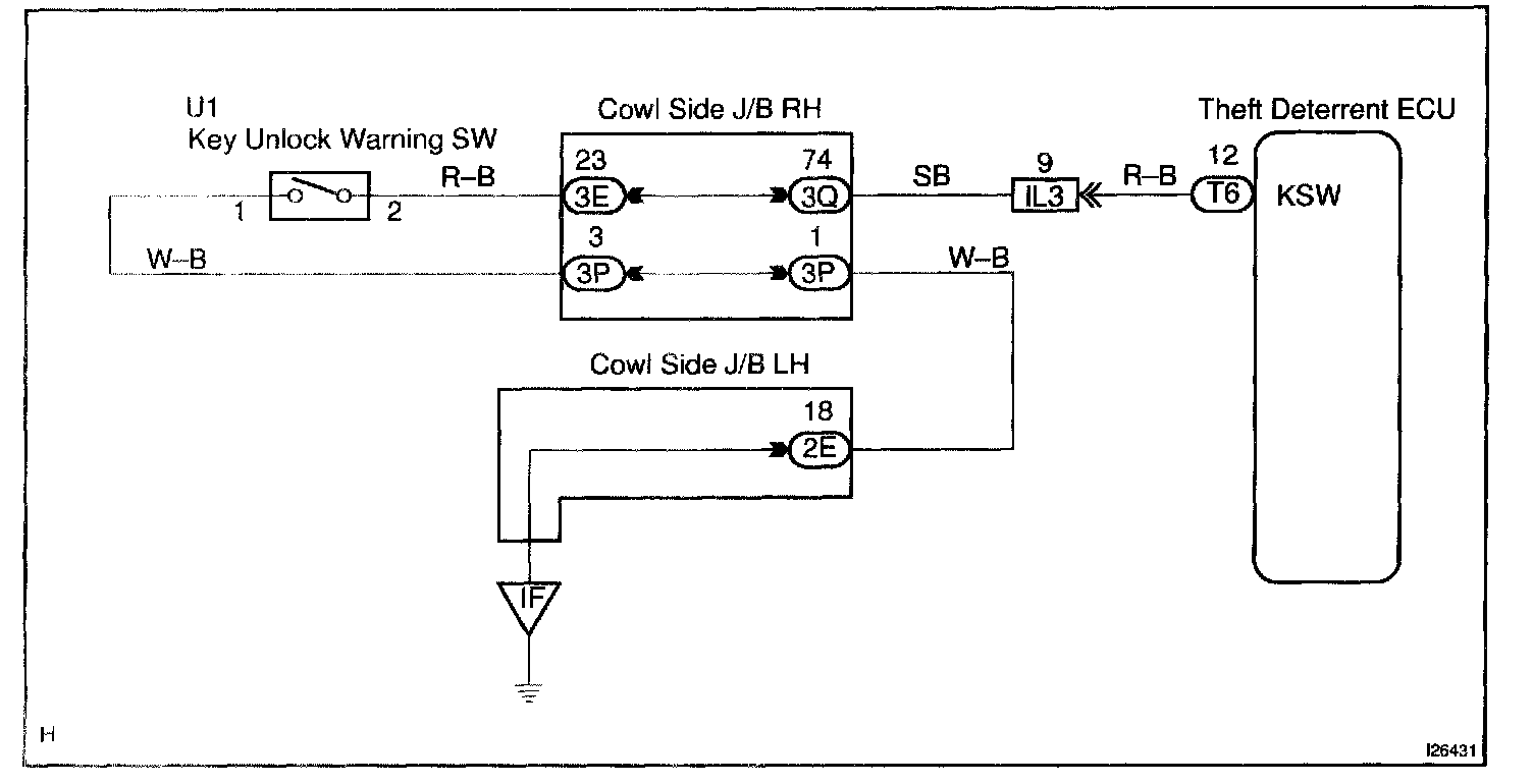 CIRCUIT DESCRIPTIONThe key unlock warning switch comes on when the ignition key is inserted in the key cylinder and goes off when the ignition key is removed.