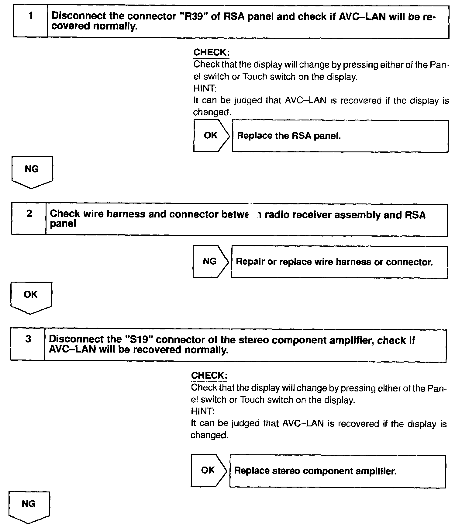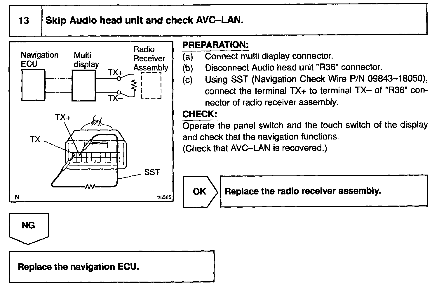 In this AVC-LAN, multi display becomes the master of the communication, and the radio receiver assembly has a terminator necessary for transmitting the communication.