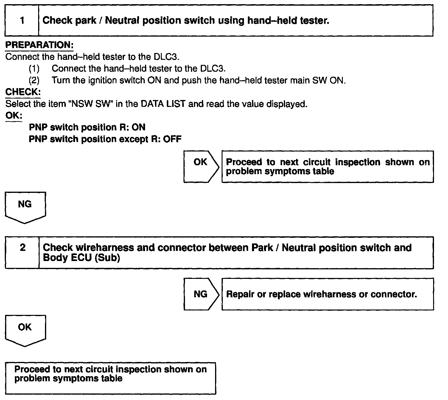 HINT: Refer to the Automatic Transmission section for the PNP switch check.
