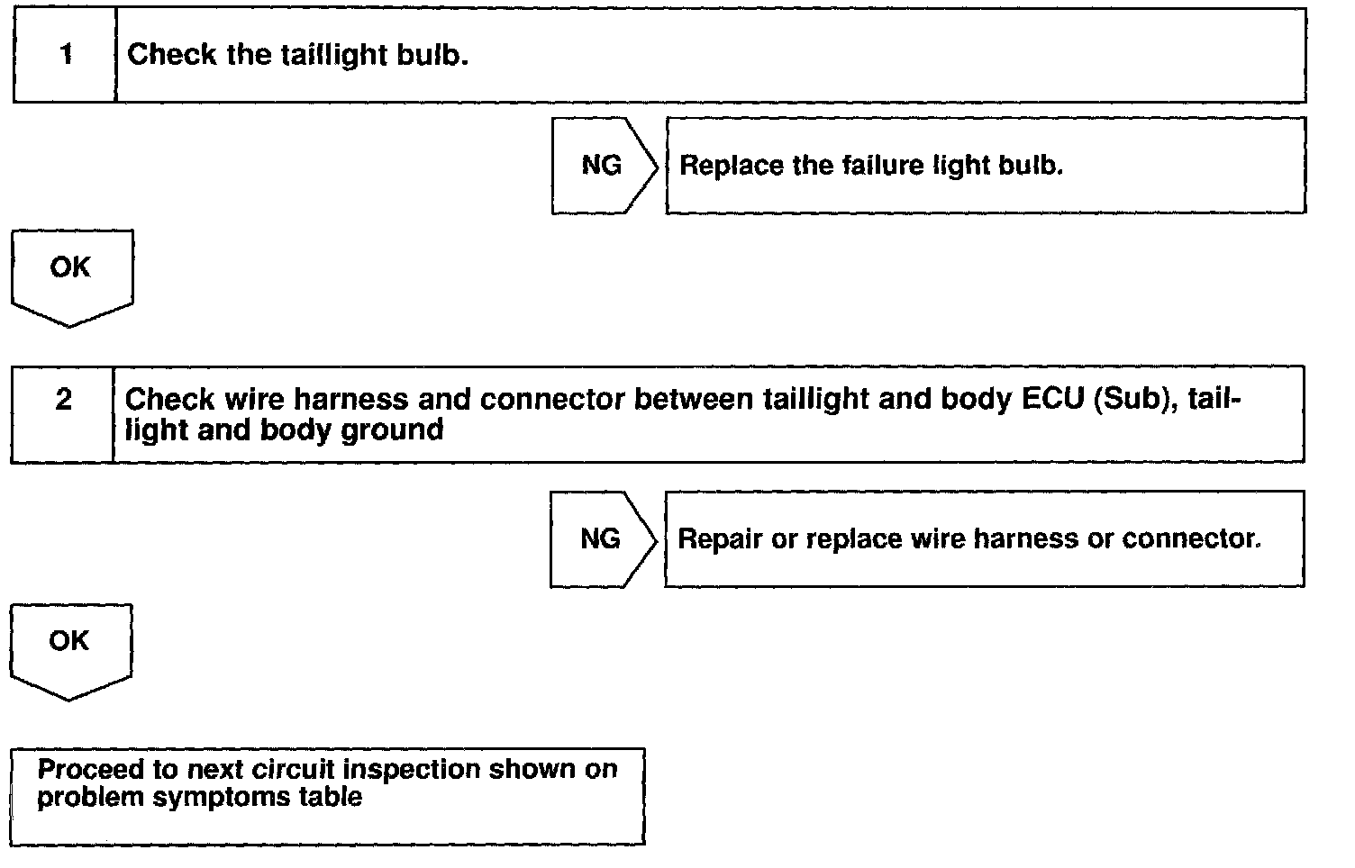 - A signal passed through "TIL2" terminal turns on the taillight on the right/left side on the back door side.
