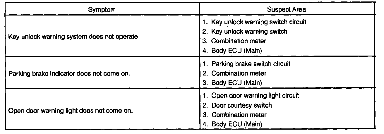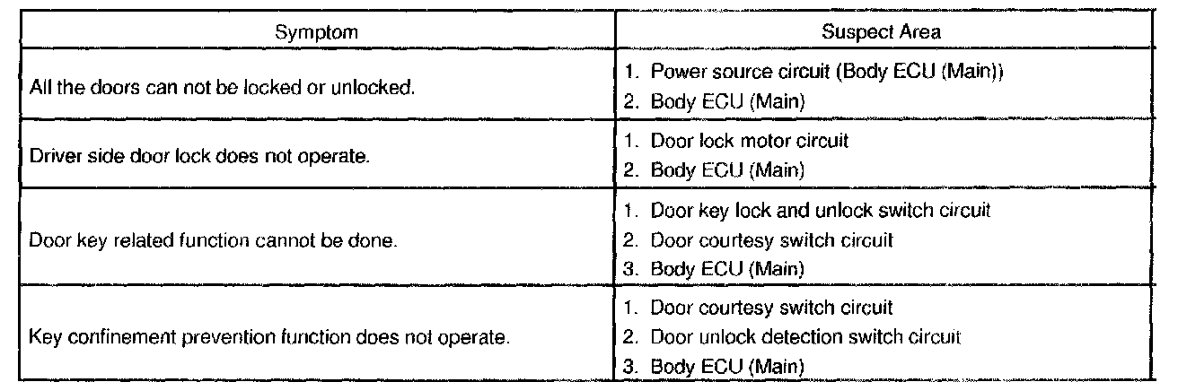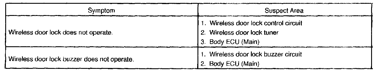 Problem Symptoms Table - Wireless Door Lock Control System: