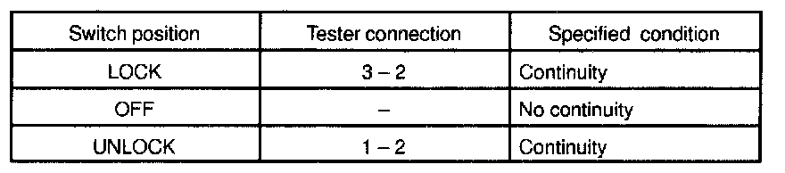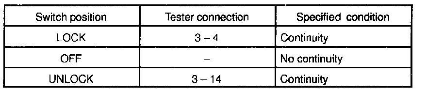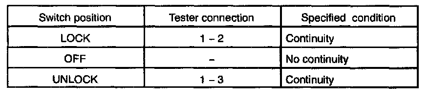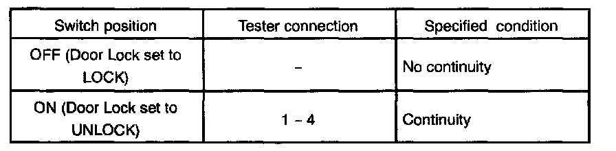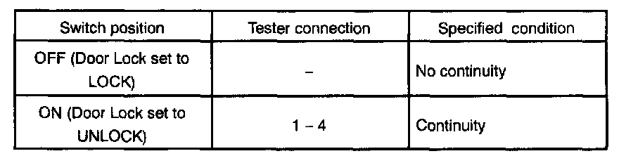 INSPECT DOOR KEY LOCK AND UNLOCK SWITCH CONTINUITY