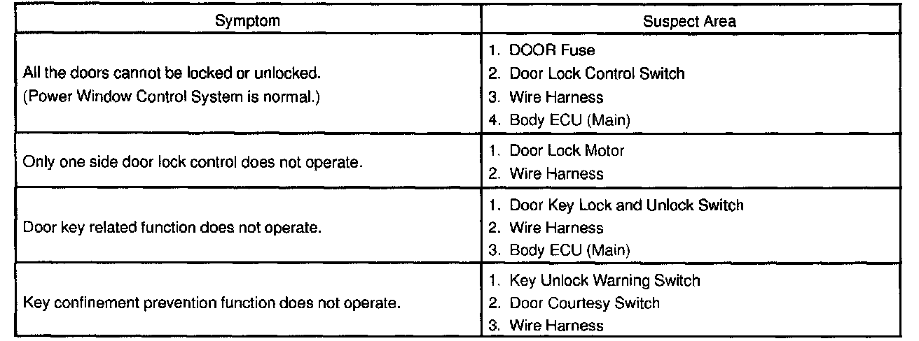 Problem Symptoms Table - Power Window Control System: