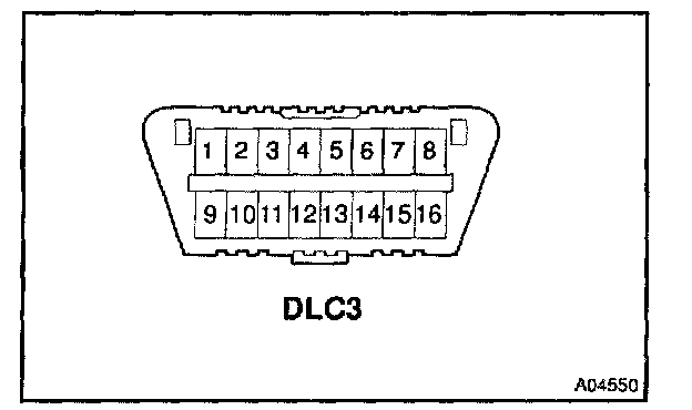 Check DLC3The vehicle's ECM uses ISO 9141-2 for communication. The terminal arrangement of DLC3 complies with SAE J1962 and matches the ISO 9141-2 format.