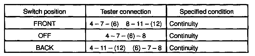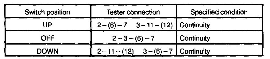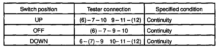 INSPECT DRIVER'S POWER SEAT SWITCH CIRCUITINSPECT DRIVER'S POWER SEAT SWITCH CONTINUITY