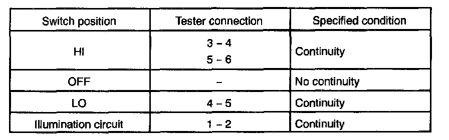 If continuity is not as specified, replace the switch.