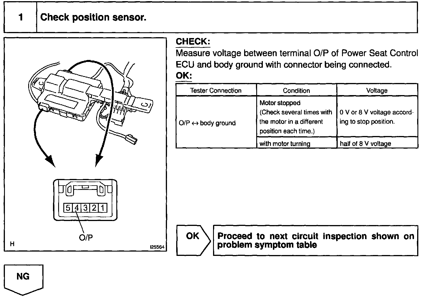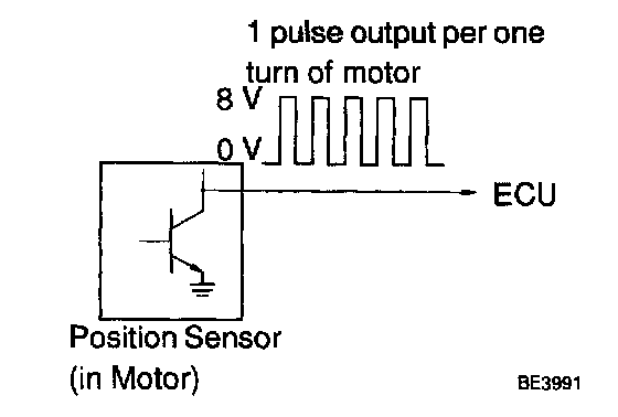 CIRCUIT DESCRIPTIONThe position sensor detects movement of the seat and sends pulse signals to the ECU The position sensor sends pulse to the ECU in proportion to the amount of seat movement as shown in the diagram.