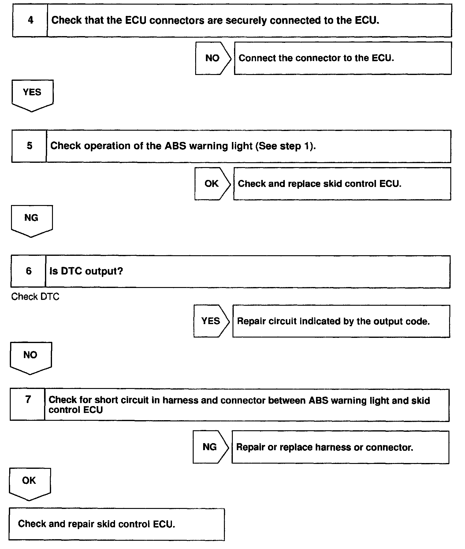 CIRCUIT DESCRIPTIONIf the ECU detects trouble, it lights the ABS warning light while at the same time prohibiting ABS control At this time, the ECU records a DTC in memory.