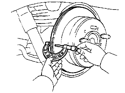 If the bearing play and axle hub runout are not abnormal, adjust the disc runout or grind it on an "On Car" brake lathe.