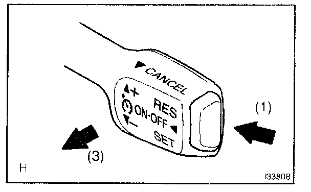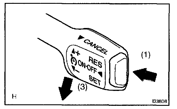 3. Check that the vehicle speed decreases while the control switch is push down to -/SET, and the vehicle cruises at the set speed when the switch is released.