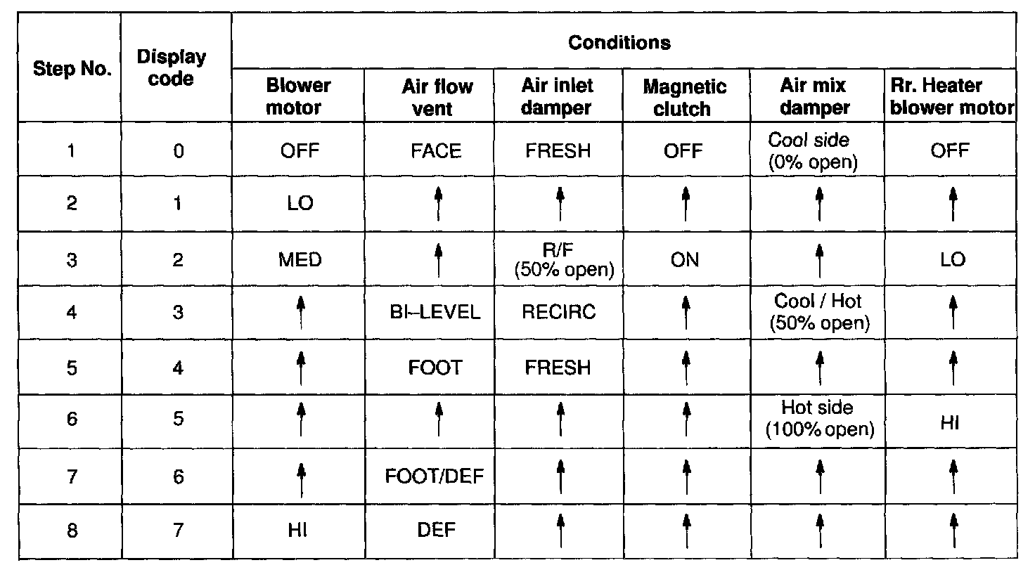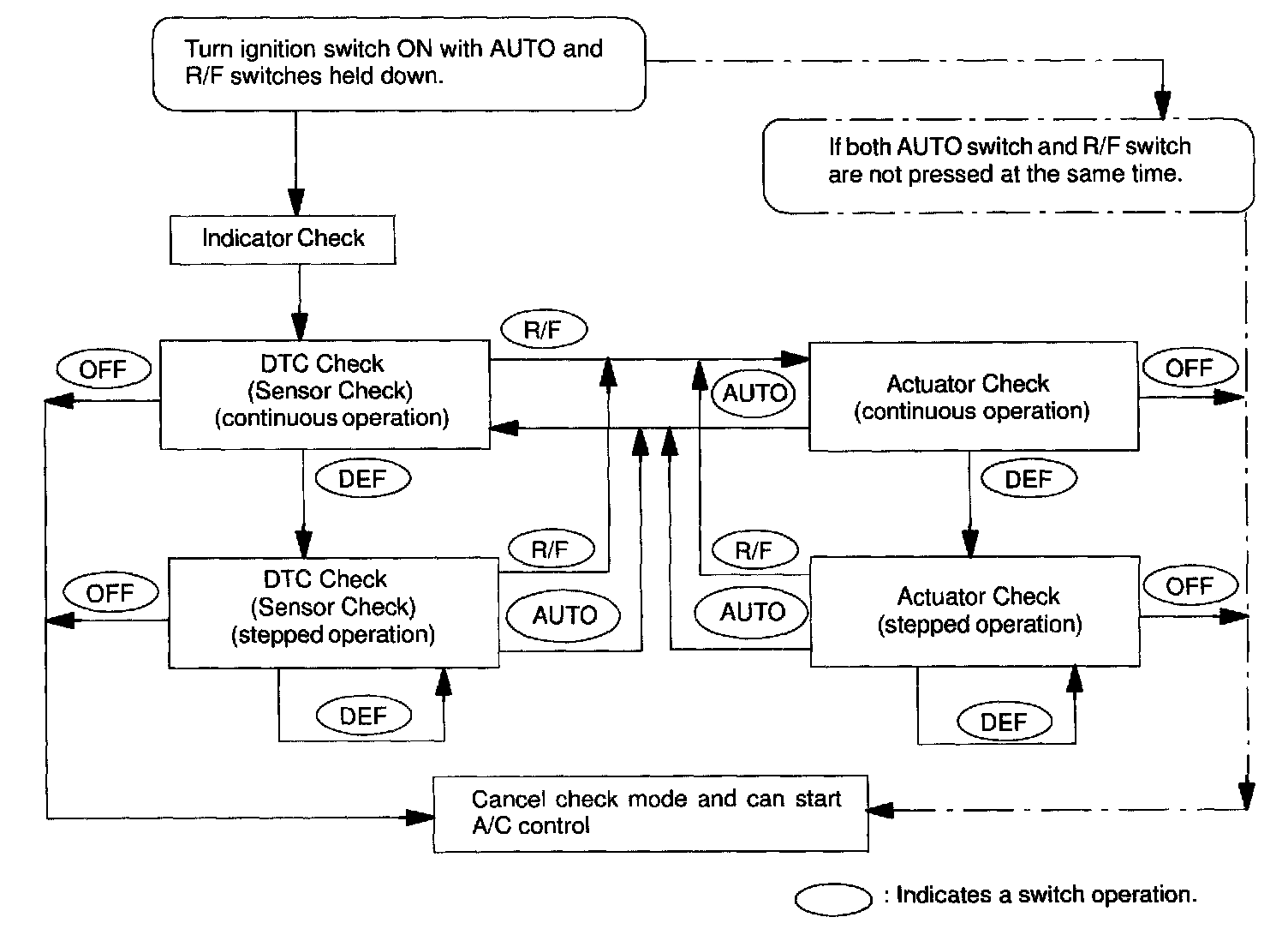 By operating each of the A/C control switches as shown in the diagram below, it is possible to enter the diagnosis check mode.