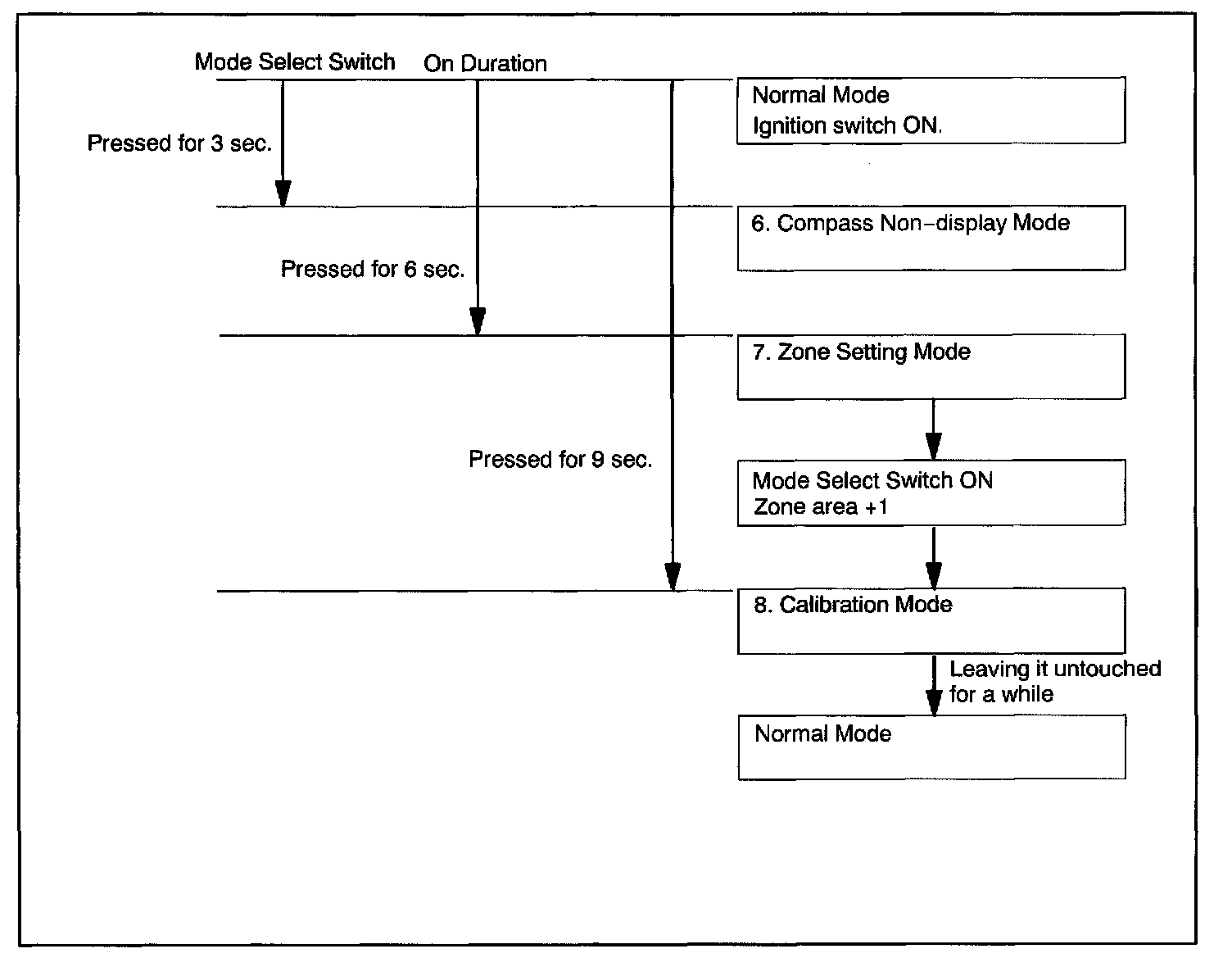 a. keep pressing the mode select switch for 3 sec. after selection of the compass display mode will activate the zone setting mode, showing a number (1-15) on the compass display.