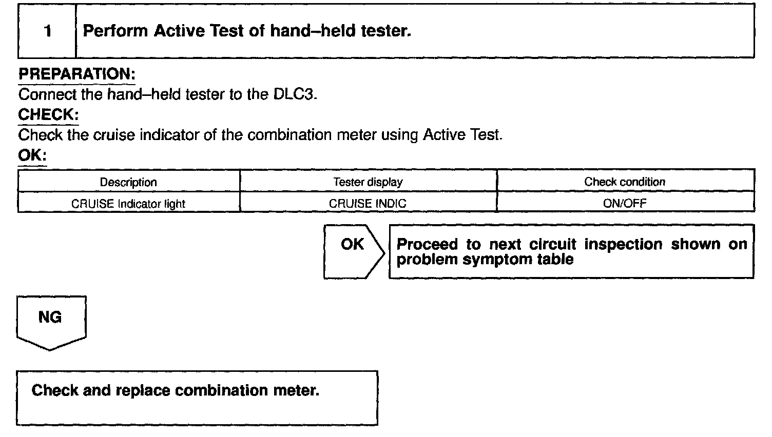 Cruise Control Indicator Lamp: Testing and Inspection