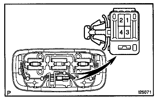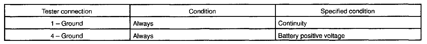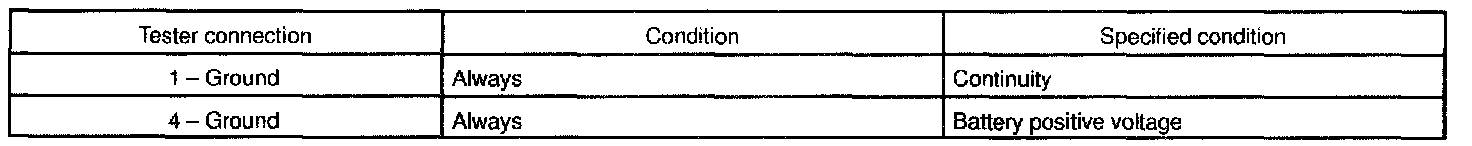 b. Turn the room light switch ON, check that continuity exists between terminal 2 and body ground.