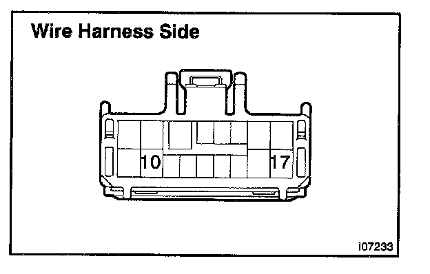 Connect the wire harness side connector to the light control and dimmer switch and inspect the connector from the back side, as shown.