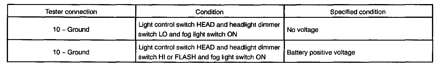 INSPECT FOG LIGHT SWITCH CONTINUITY