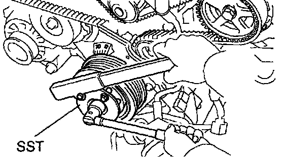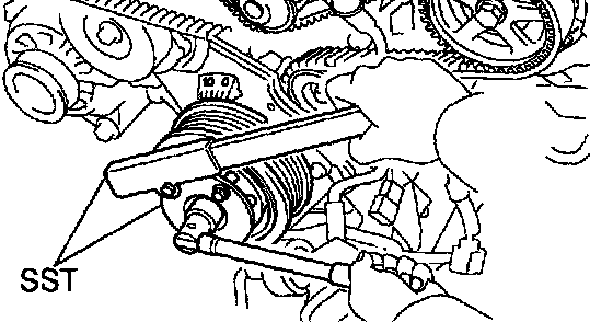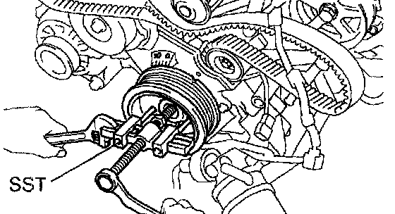 Using SST, remove the crankshaft pulley.