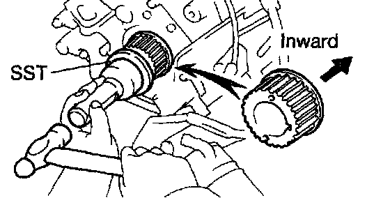 b. Using SST and a hammer, tap in the crankshaft pulley.