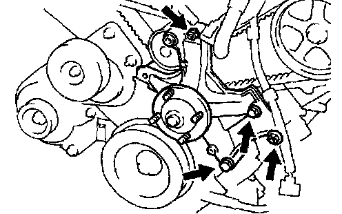 Remove the pulley bolt, the cover plate and the idler pulley.