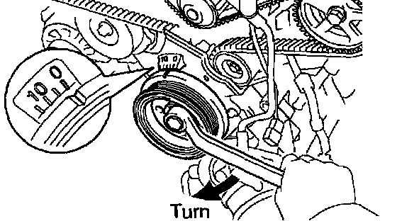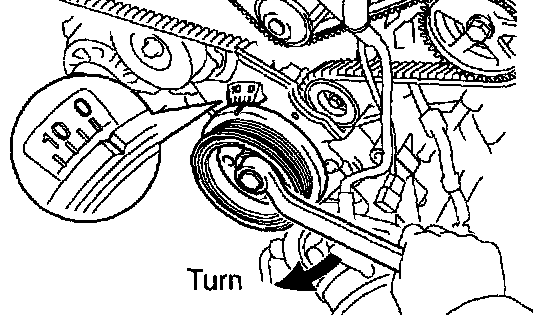 NOTICE: Always turn the crankshaft pulley clockwise.