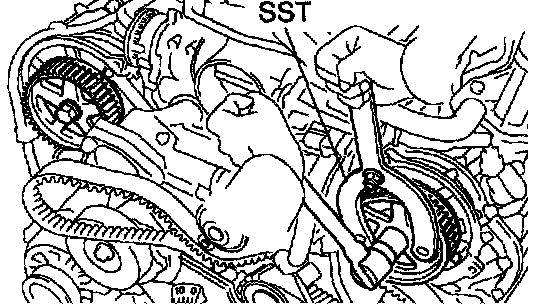 CONNECT TIMING BELT TO LH CAMSHAFT TIMING PULLEY