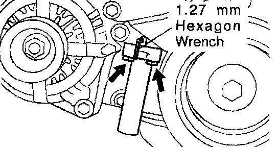 c. Using pliers, remove the 1.27 mm (0.050 inch) hexagon wrench from the belt tensioner.
