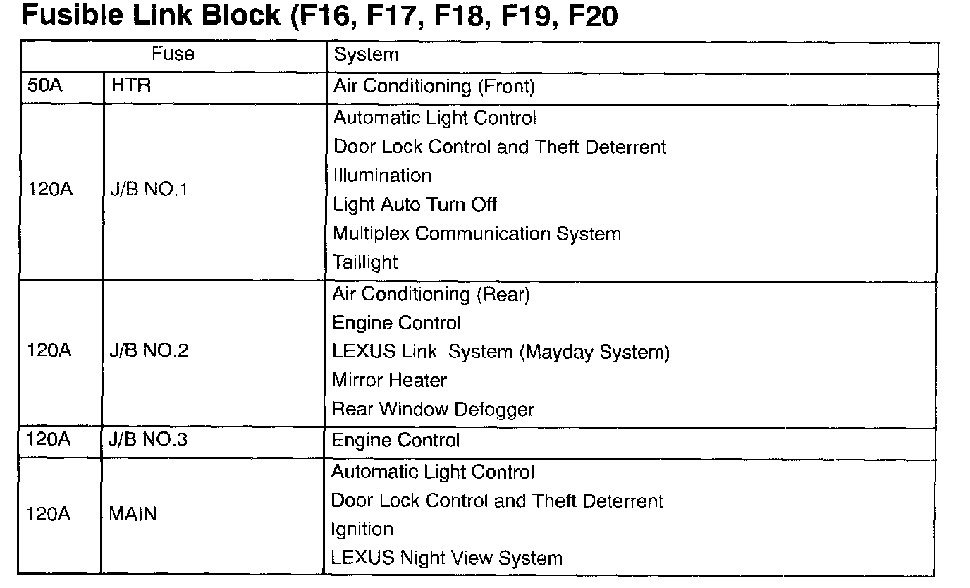 Fusible Link Block (F16, F17, F18, F19, F20) Part 1:
