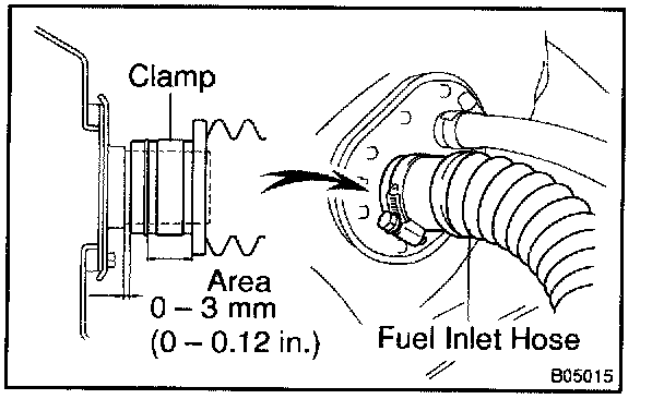 b. Check the fuel tank vapor vent system hoses and all connections for looseness, sharp bends or damage.