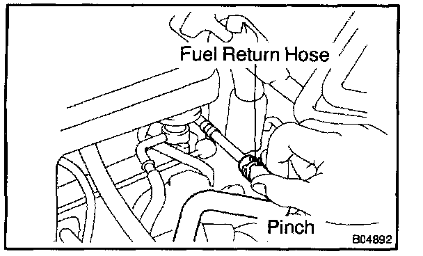 6. Pinch the fuel return hose.