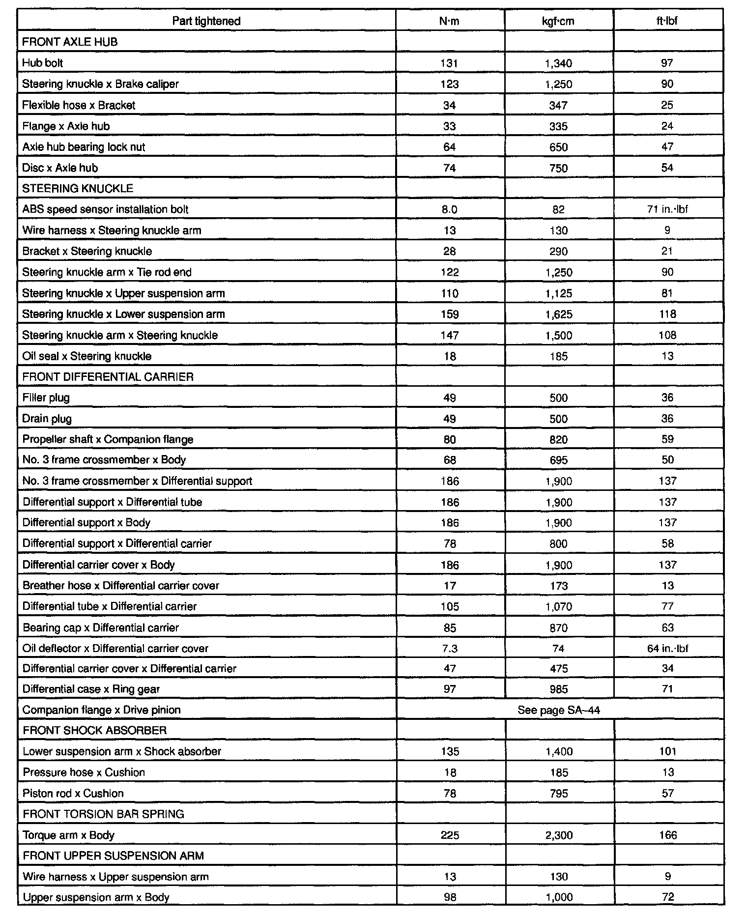 Torque Specification