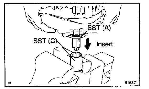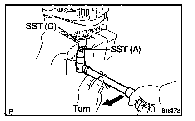 e. Insert SST (B) into SST (C), and attach the pulley nut to SST (C).