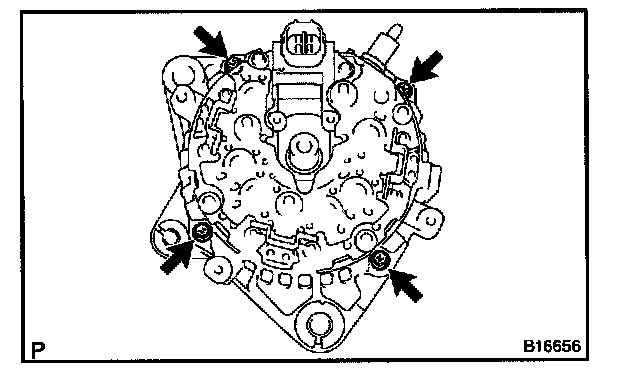 d. Align the pins of the brush holder with the holes of the rear seal plate, and install the rear seal plate.