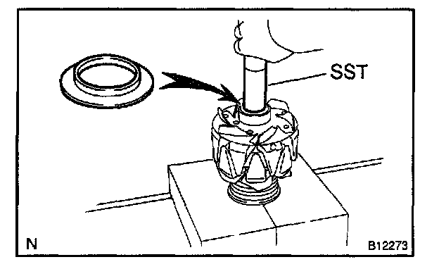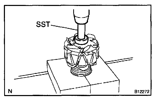 b. Using SST and a press, press in a new bearing.