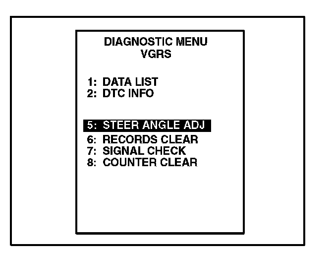 A. Select "5: STEER ANGLE ADJ" from the "DIAGNOSTIC MENU VGRS" menu.