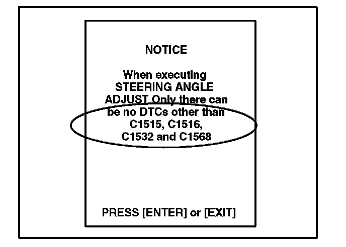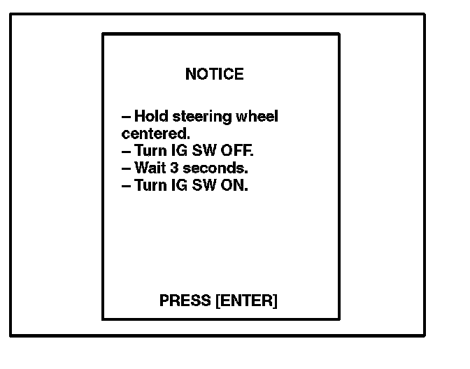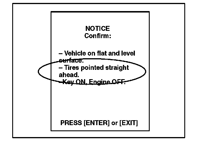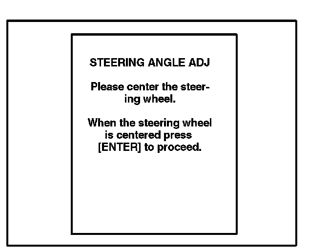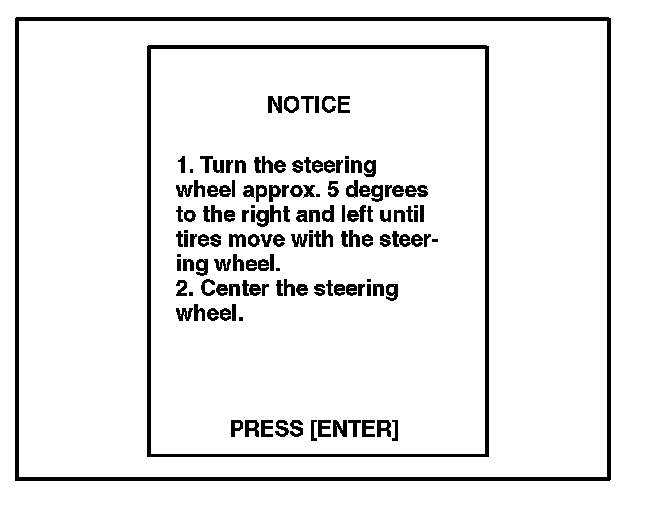 E. When the "STEERING ANGLE ADJ" screen appears, turn the steering wheel to the straight and neutral position. When the steering wheel is straight and level, press [ENTER] to continue.