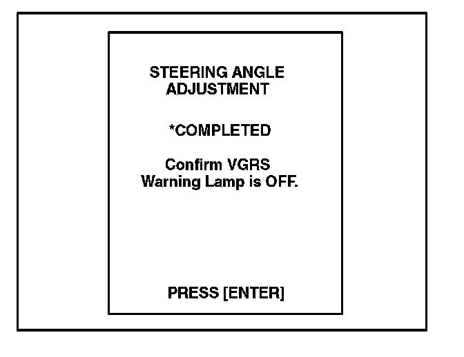 J. When the adjustment is completed, the "COMPLETED" screen will appear. Confirm that the VGRS warning light is off, and press [ENTER].